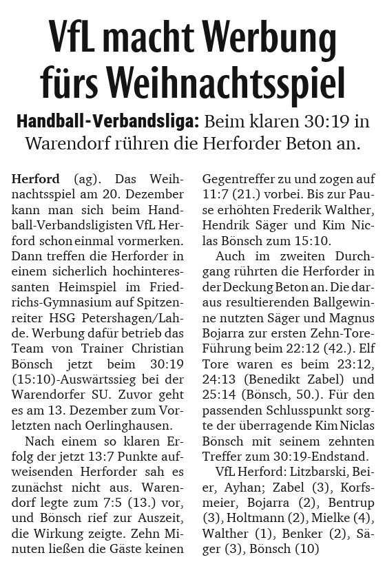 VfL macht Werbung fürs Weihnachtsspiel
