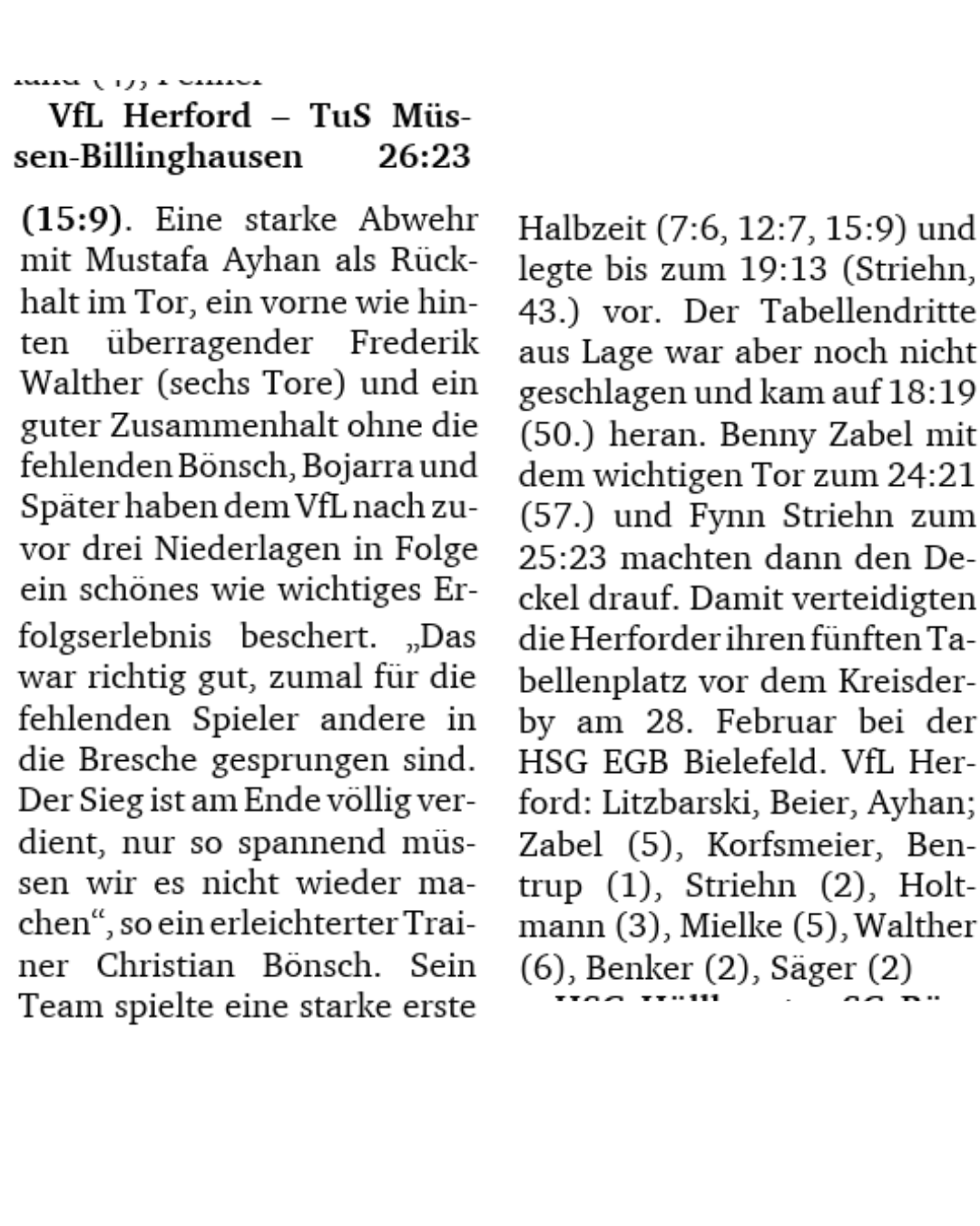 Personell verstärkter Gastgeber besiegt den Spitzenreiter VfL Herford mit 27:23.