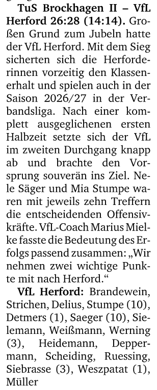 TuS Brockhagen II – VfL Herford 26:28 (14:14)